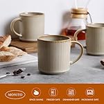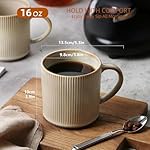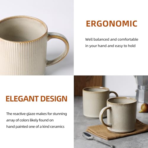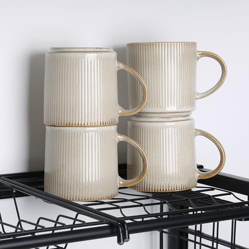 MONITO 16Oz Coffee Mugs Set of 4, Rustic Ceramic Coffee Cups Set with Large Handle, Vintage Striped Stoneware Coffee Mugs for Latte, Cocoa, Tea, Milk, Microwave & Dishwasher Safe, Bonbon Beige