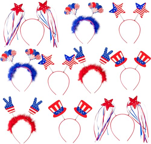 Moon Boat 12PCS Patriotic Head Boppers Headband – Star Uncle Sam Hat Balloons- Fourth 4th of July Party Accessories Favors Decorations