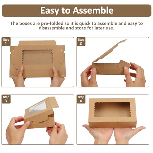 Easy to Assemble: Bakery boxes with window are flat and pre-folded, the package is flat, easy to fold and assemble. If you don’t need to use it, you can unpack and flatten it for easy storage.