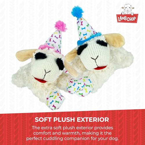 There’s no better way to say Happy Birthday to your dog than with a Lamb Chop dog toy! Lamb Chop with Birthday Hat from Multipet is the cute and cuddly dog toy your pet needs to celebrate their birthday this year. Shari Lewis’ iconic and beloved Lamb Chop is ready to play with your pet on their special day. This dog toy features Lamb Chop wearing a birthday hat with a multicolored, dog-bone print that is also on its hooves. Soft, snuggly, and oh so cute, the Lamb Chop with Birthday Hat dog toy is perfect for an afternoon of playing … or birthday partying! This dog toy measures 10.5” and is pink-trimmed on party hat. You will receive one item.