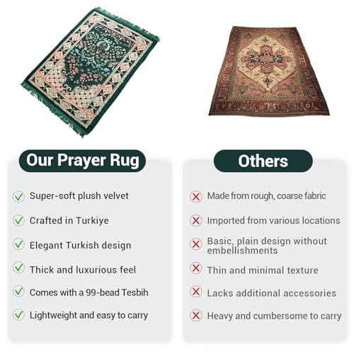 Perfect Islamic Gift: This prayer rug, complete with a beautiful set of prayer beads, makes an exceptional gift for any occasion, including Eid, weddings, or housewarmings. Show your love and appreciation with a thoughtful item that enhances spiritual practice