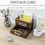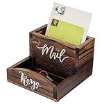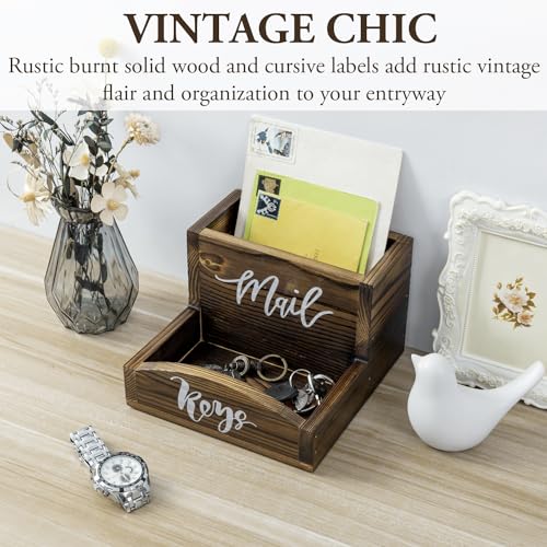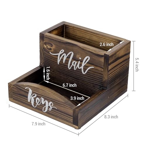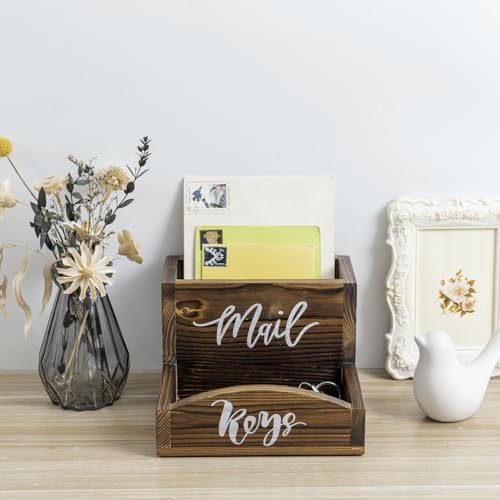 Rustic burnt solid wood tabletop 2-in-one entryway organizer with white script lettering “Mail” and “Keys” labels for home or office