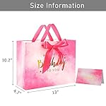 Nihuecne 13″ Large Birthday Gift Bag with Card and Tissue Paper, Big Pink and Gold Wrap Paper Gift Bag with Satin Ribbon Handles for Girls and Women’s Birthday Party