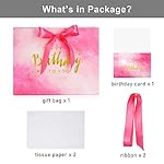 【Unique Designs】Sturdy pink birthday gift bag with gold foil “Happy Birthday To You” design, the card to write your best wishes and the tissue papers to wrap presents . The bag comes with two pink soft satin ribbons which you can use to make bow-knot handles or other forms of handles, decorating your gift and birthday party with more sweet and romantic.