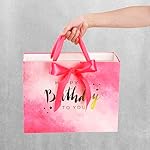 【Excellent Quality】Made of high-quality 300gsm thick premium white cardboard, which is thick, not easy to tear, environmentally friendly durable. The gift bag is printed in bright pink color, providing you with a service for a long time.