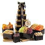 NUT CRAVINGS – Diwali Sweets Hamper Mid-Autumn Festival Dried Fruit & Mixed Nuts Gift Basket in Black Tower + Ribbon (12 Assortments) Food Arrangement, Healthy Snack Care Package, Food Assortments