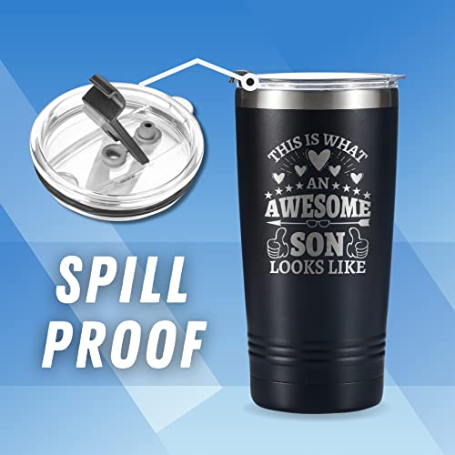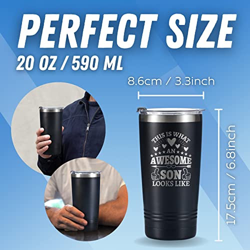 Son Gifts Travel Coffee Mug Tumbler, Gifts from Mom Dad, Parent, Father, Mother for Son’s Birthday, Graduation, Adulthood, Christmas, Stainless Steel Insulated 20oz/590ml Awesome Son