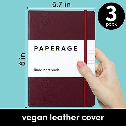 PAPERAGE Lined Journal Notebooks, 3 Pack, (Burgundy, Light Grey, Navy), 160 Pages, Medium 5.7 inches x 8 inches – 100 GSM Thick Paper, Hardcover