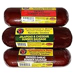 Gift Box Includes: 3-12oz. Naturally Smoked Summer Sausages, Original Smoked, Garlic, Jalapeno Cheddar, 2-4oz. Cheddar Cheese, 1-4oz. Pepper Jack Cheese, 1-2.2oz. Water Crackers, 1 Dipping Pretzels, 1-1.5oz. Mustard.