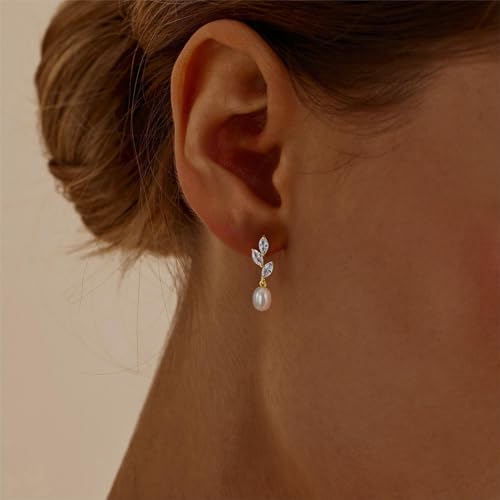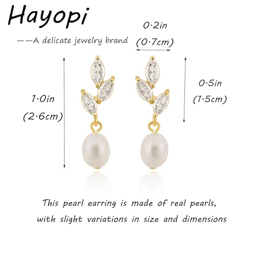 Hayopi Pearl Earrings for Women – Dainty Gold Dangle Drop Earrings, 14k Gold Plated Cute Bow Design, Hypoallergenic Pearl Studs, Wedding Jewelry Gifts