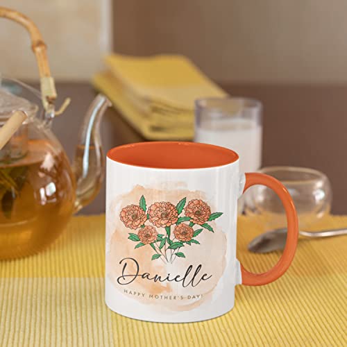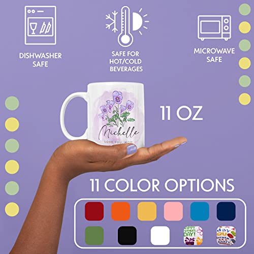 Personalized Birth Flower Mug with Name & Text, 11 Oz, 11 Colors, Custom Mug with Birth Flower Month, Personalized Gifts for Mom, Sister, Aunt, Gifts for Women