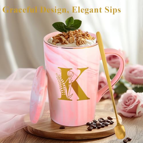 Personalized Elegance: Discover the perfect blend of beauty and functionality with this personalized ceramic coffee mug, available in 26 letter designs. Its stunning pink marble finish and gold foil detailing make it an elegant gift for any special woman in your life.
