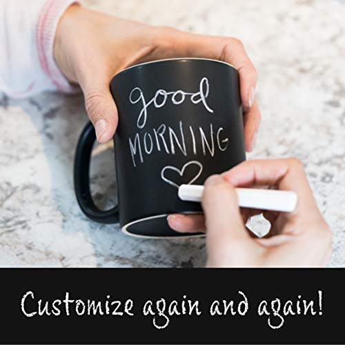 PERSONALIZE: The Chalkboard Mug makes for a fun way to personalize your drink. Coming with chalk you are able to doodle, scribe, and mark the mug however you like for the day.