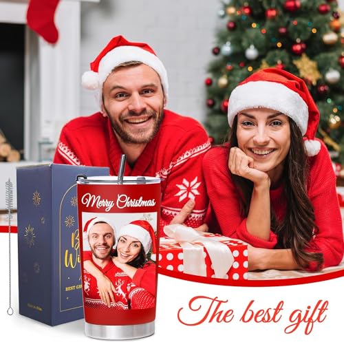 Personalized Coffee Tumbler with Pictures Text Logo Name, Custom Stainless Steel Tumbler with Lid and Straw, Coffee Travel Mug Cup, 20oz Personalized Birthday Gifts for Christmas office