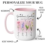 Personalized Grandma Mug with Custom Kid Names and Text, Grandma’s Garden Mug 11oz 15oz Customized Mother’s Day Coffee Cups for Grandma, Gifts for Mom Mama Nana from Kids Grandkids on Mother’s Day