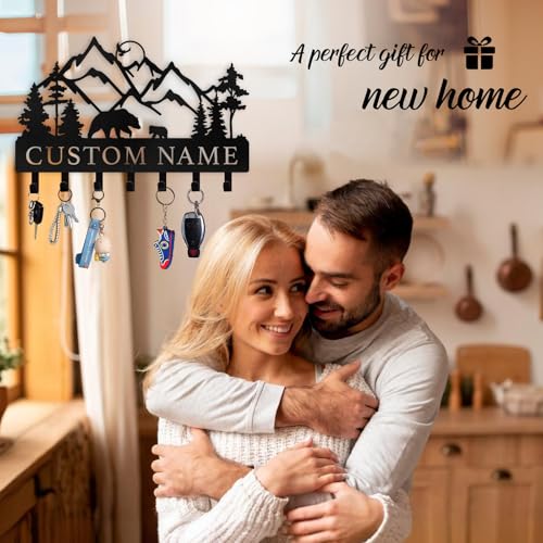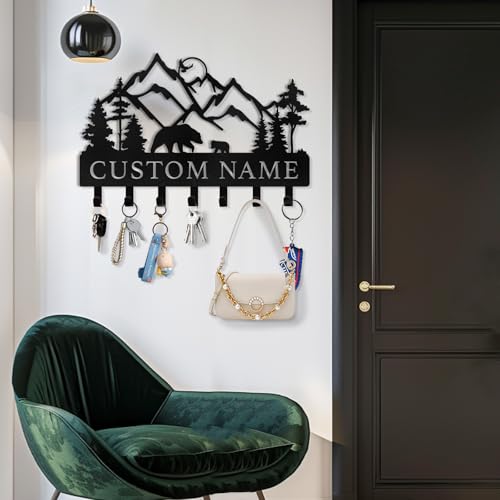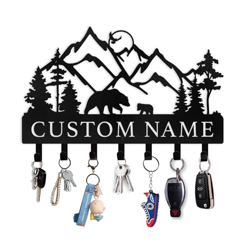 Personalized Key Holder for Wall – Custom Name Metal Black Bear Coat Hook Key Holder Wall Mount, Key Hooks on Wall, Key Rack Hanger Organizer for Entryway, Front Door, Hallway, Home Decor