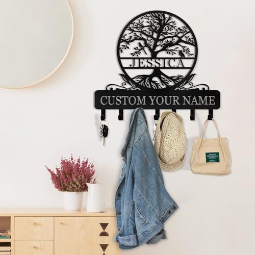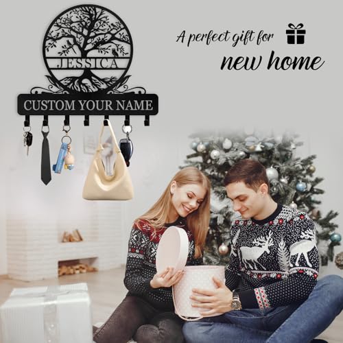 Personalized Metal Key Holder for Wall | Custom Name Key Holder Wall Mount | Metal Key Hooks with Tree Design | Key Organizer Wall Decorative | Key Hanger for Hallway Bedroom | Housewarming Gifts