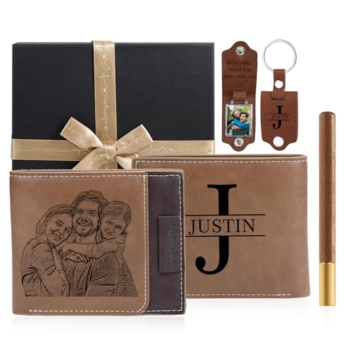 Personalized Photo & Name Initials Wallet for Men, Customized Gifts for Husband BF Dad Son Family Groomsmen Friend, Birthday Anniversary Father’s Day Christmas Gifts