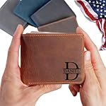 Personalized Leather Wallet for Men â Engraved Name Initial, Custom Monogram in 5 Colors & 6 Designs â Ideal Gift for Husband, Dad, Boyfriend, Wedding, Christmas, Anniversary, Birthday, Gifts for Man