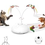 Potaroma Electric Running Cat Laser Toys Interactive, Fluttering Butterfly, 4in1 Automatic Rechargeable Kitten Toy, Colored Feather, Indoor Exercise Cat Kicker, White