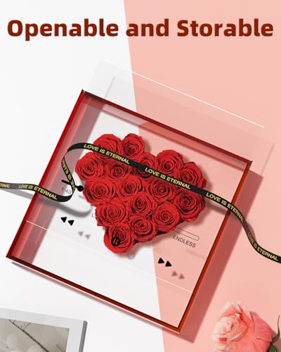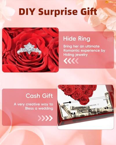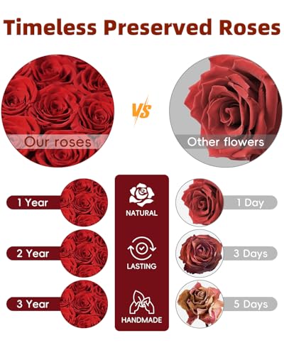 UNIGIFT Preserved Roses for Mothers Day, Handmade Forever Flowers Box for Mom, Unique Flower Gifts for Girlfriend Wife, Wedding Anniversary Presents for Her, Birthday Gifts for Mom Grandma (Red)