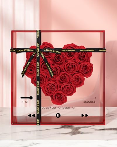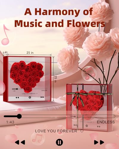 A Harmony of Music and Flowers: The crystal-clear acrylic box gracefully displays the text “LOVE YOU FOREVER”, as if the music is softly playing. This enchanting design blends the soothing melody with the timeless beauty of roses, symbolizing love that, like music, is endless and deeply touching. Additionally, the box can be opened to hold extra little surprises like rings, cash gift, or notes.
