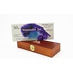 Viburnum Art Professional Watercolor Paint Set – 24 Half Pan Highly Pigmented Transparent Water Color Paints with #4 Synthetic Water color Brush, Mixing Palette & Wooden Box Gift Watercolor Kit