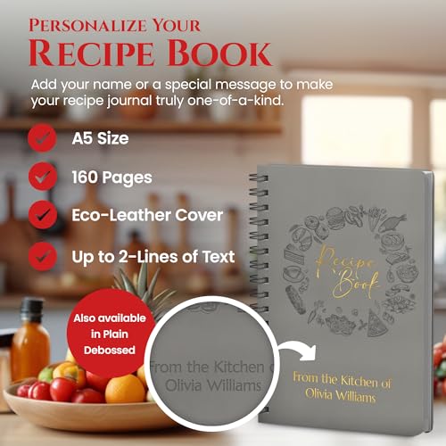 Promot Personalized Family Recipe Book to Write in Your Own Recipes- Blank Cookbook with Embossed Foil Text, Custom Cookbook, Blank Recipe Book Binder A5 Size, 160 Pages (Gray)