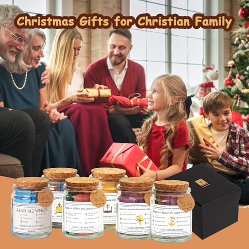 【Reusable Bible Verses in a Jar】Crafted with durable glass material,our bible verse Jar is designed for long-term,repeated use.The scripture strips are made from high-quality paper and feature a protective film,which is waterproof and tear-resistant,guaranteeing their durability and maintaining clarity.This exquisite set also includes a sleek black gift box,adding an elegant touch to the overall presentation