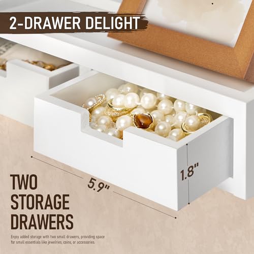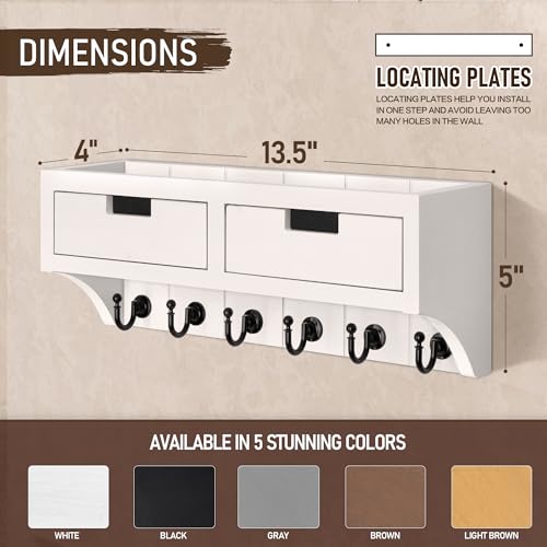 Rebee Vision Key Holder Wall Mount with Drawer Organizer: Mail Organizer with 6 Key Hooks & Dual Drawer Storage – Room Decor for Home and Apartment Essentials (Modern White)