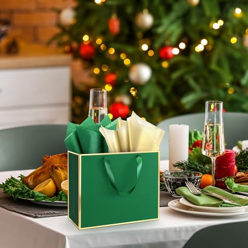 Pack of 12 for Ample Usage: the package includes 12 packs of these elegant green paper bags; Along with this, you’ll also receive 12 sheets each of green and gold tissue paper, ensuring you have enough material to prepare exquisite gift packages for your friends and family
