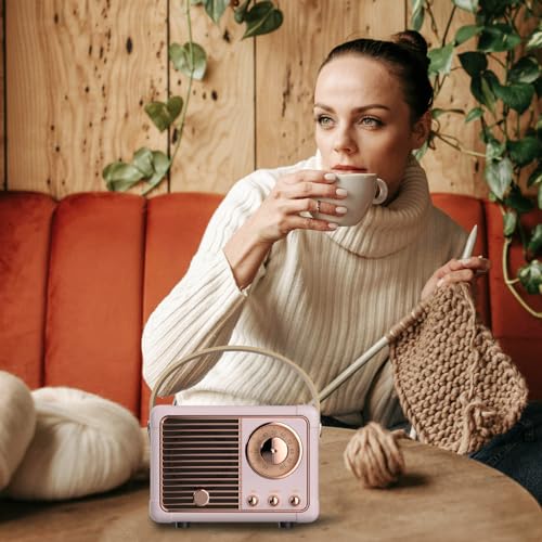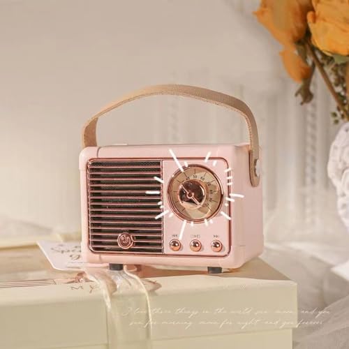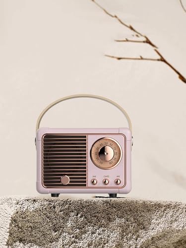 Retro Bluetooth Speaker, Wireless Mini Portable Speaker Vintage Radio Support USB/TF Card/AUX, Cute Bluetooth Speaker for Kitchen Desk Bedroom Office, Birthday Gifts for Women Teenage, Pink