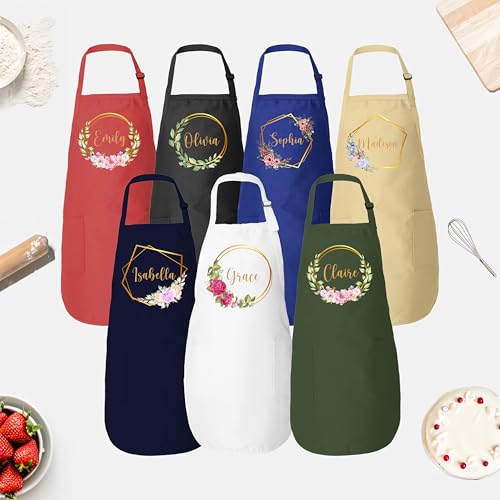 ROKO CLOTHING Personalized Apron Floral Initials Design Name Text with Pockets – Custom Name Kitchen Aprons Women, Gift for Baking, Cooking, BBQ, Gardening, Adjustable Neck & Waist