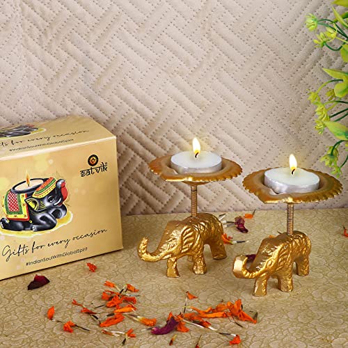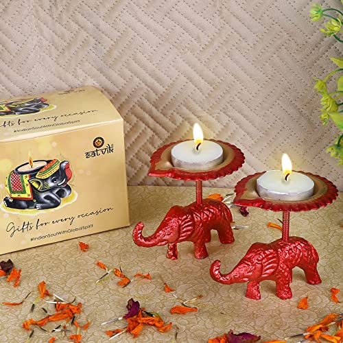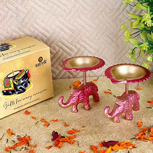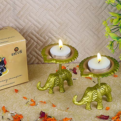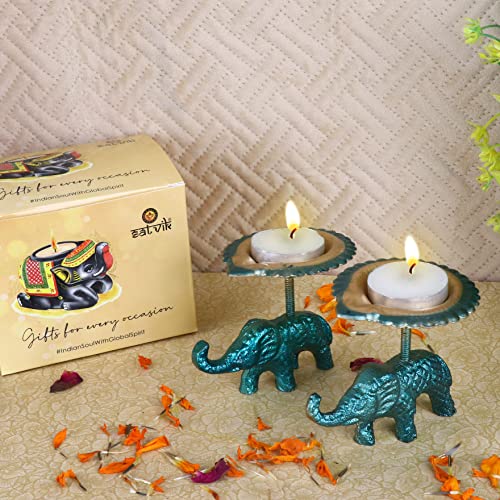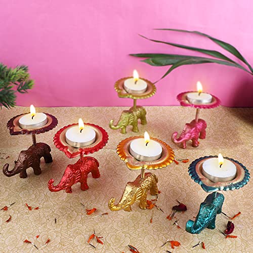 Package Contains : Set of 2 Pc (Same color) Beautiful Designer Elephant Stand Table Diya / Candle Tea Light Holder. The Set Color can vary.