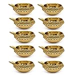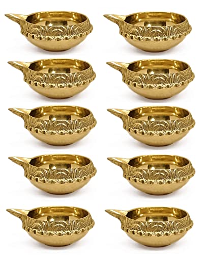 SATVIK Set of 10 Brass Oil Lamps for Home Decoration | Handmade Small Diya Set | Traditional Indian Style | Antique Gold Finish | Decorative Home Accents