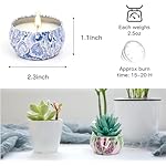【Portable and Resuable】: Each scented Soy Wax candle has a jar with exquisite artistic patterns, suitable for decorating your house or storing small things after use. For example, jewelry earrings or decorative storage container flower pots.Mini travel design make it convenient for carry to vacation and easy to pack for travel without worrying about the containers breaking.