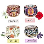 Scented Soy Candles Aromatherapy Gift Set: Rose Lavender Vanilla Jasmine 4pcs Natural Wax 4.4 Ounce Travel 100% Soy Wax Tin Fragrance Relaxing Stress Relief Aroma Home Bath Spa Gifts for Women