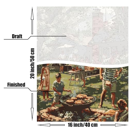 shinefly Paint by Numbers on Colorful Canvas Acrylic Kits for Kids, Adult, Beginner 16×20 inch Oil Painting Kits Gift, Weekend Barbecue