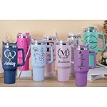 Ships Next Day, Personalized 40 Oz Tumbler with Handle and Straw, Custom Stainless Steel Insulated Tumbler with Name Travel Coffee Mug Personalized Gifts for Women Girls