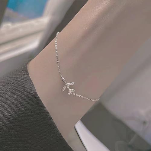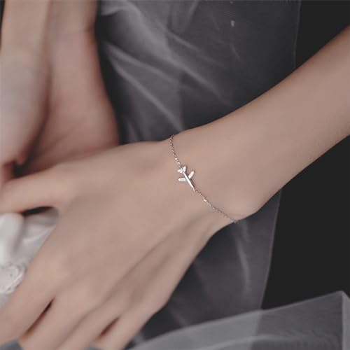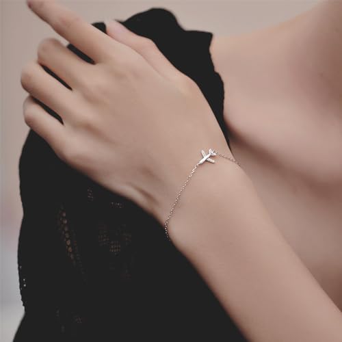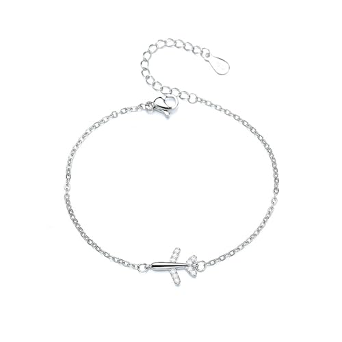 Silver Thin Link Bracelet Sparkling CZ Dainty Airplane Cross Bracelets for Women Infinity Heart Adjustable Bracelets Simple Unique Birthday Bangles Gifts for Lover Stewardess Pilots