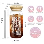 🎁【Sister Gift Basket Set Contains】The 7-piece Sister Gift Set is a thoughtful choice, 16 Oz can glass with lid and straw, 1 x makeup bag, 1 x soy wax Lavender scented, 1 x pure handmade soap, 1 x bath bomb, and 1 x heartfelt greeting card, 1 x unique Colorful Imperial natural stone bracelet and a card for your special message.