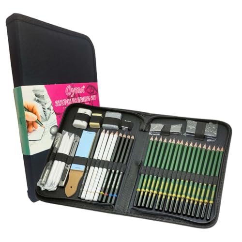 Oytra Sketching Set 42 Pieces for Drawing Pencils Sketching Kit for Artists Potrait Professional Graphite Hb Drawing Graphics Set for Sketches Shading Charcoal Stationary for Beginners
