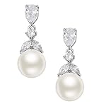 SWEETV Cubic Zirconia Pearl Drop Wedding Earrings for Brides, Ivory Bridal Pearl Earrings for Bridesmaid Jewelry Gift