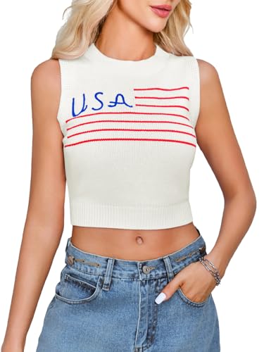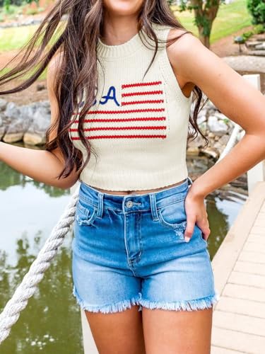 Tankaneo Womens American Flag Crop Tank Tops High Neck 4th of July Patriotic Summer Sleeveless Shirts Sweater Vest