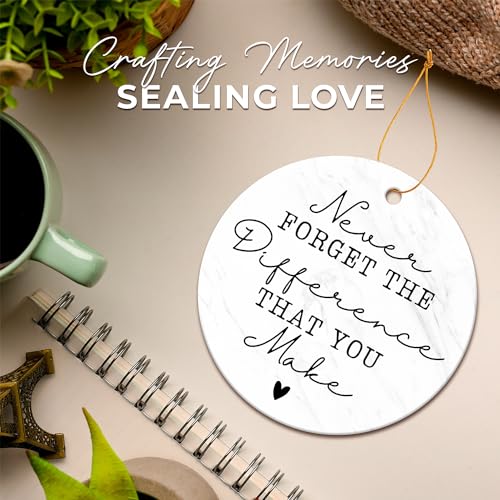 APPRECIATION GIFTS FOR WOMEN/MEN: Seeking a heartfelt gesture? Our ceramic ornament, adorned with the uplifting quote ‘Never Forget The Difference That You Make,’ is perfect for expressing gratitude and appreciation. Suitable for men or women, it serves as a lasting reminder of the impact they’ve had. Let your loved ones know that their efforts are cherished and will never be forgotten. Ideal gift for thank you, retirement, farewell, goodbye, going away, leaving, Administrative Professional Day