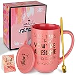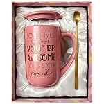 Thank You Gifts for Women, 18oz Large Pink Coffee Cup Printed with Gold, Sometimes You Forget You’re Awesome Mug, Inspirational Birthday Mothers Day Gift for Mom Wife Daughter Sister Friends, Gift Box