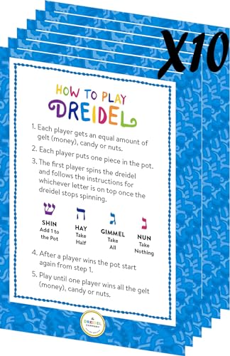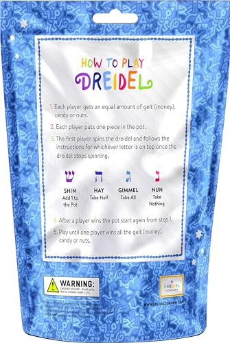 Hanukkah Dreidels Bulk Pack Blue & Silver Color Metallic Plastic Chanuka Draydels With English Transliteration – Includes Dreidel Game Instruction Cards High-Quality Silver & Blue Colored Assorted Metallic Plastic Dreidels. Let’s Play Dreidel Hanukkah Game Spinning Top. Assorted Metallic Multi-Color Plastic Dreidels with Foil Embossed Hebrew Letters & English Translation. Great for all Kids Ages 3 and up. The Metallic Dreidels Party Favor adds Fun and Atmosphere to your party that will leave good memories for all your guests! They are wonderful gifts for Birthday Parties, Carnival Prizes, Classroom Rewards, Goodie bag Fillers, and much more! You can Choose Between our 4-Pack, 10-Pack, 30-Pack, and 100-Pack. Detailed Dreidel Game Instructions Cards Included.