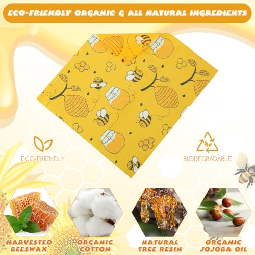 Reusable food wrapper is not just functional, but also visually pleasing. The bee, honeycomb, and other patterns adorning the wraps, brings a touch of elegant to your kitchen, enhancing the overall presentation of your food.