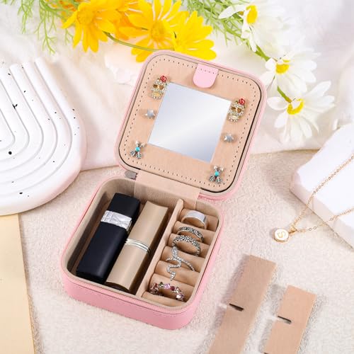Durable and Multifunctional Space: This mini travel jewelry case box can keep your jewelry in order and prevent necklace knots. This travel jewelry case comes with 7 groove coils, 4 rectangular partitions, and earring compartments. Two detachable partitions to meet different needs. You can also keep some small accessories, such as lipstick and watch. The built-in mirror makes it convenient for you to wear jewelry and is also suitable for makeup