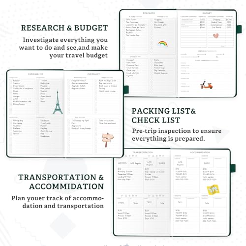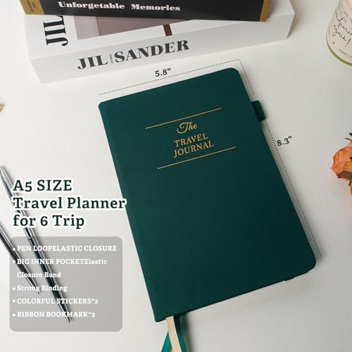 Travel Essentials: Journal for Women & Men – Vacation Budget Planner Notebook for 6 Trips Organizer- Travel Scrapbook to Record Memories and Adventures – Gifts for Travelers, Green